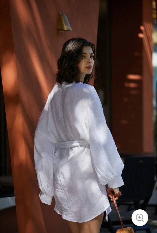 KNOTTED BACK STRIPED BLOUSE WITH PUFF SLEEVES