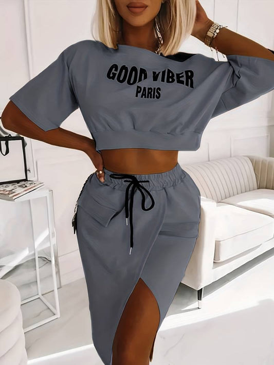 LETTER PRINT SET CROP ELEGANT MATCHING