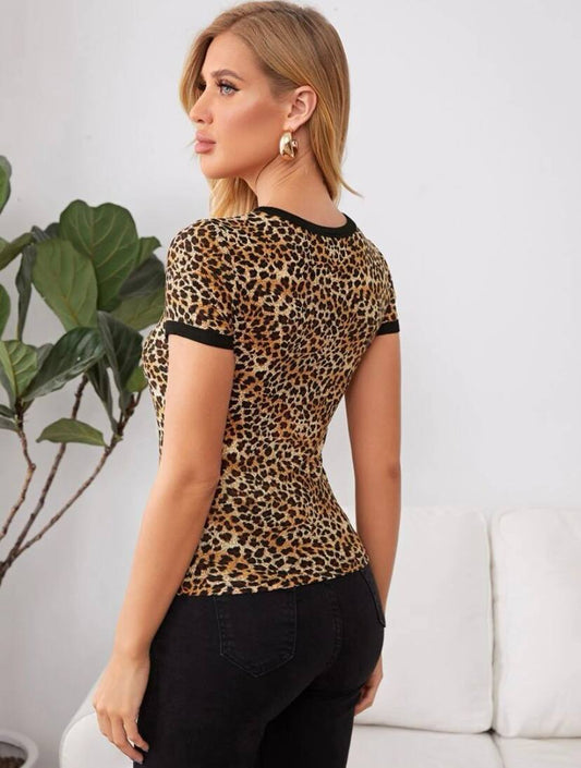Keyhole Back Halter Top, Leopard Tieneck Tops