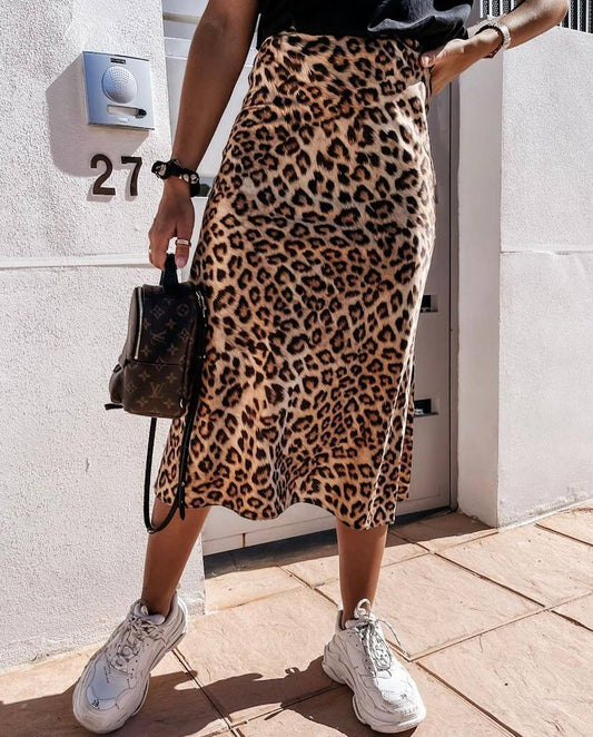 Leopard Print Short Sleeve T Shirt Dress Crewneck Pocket A Line Tee Dress