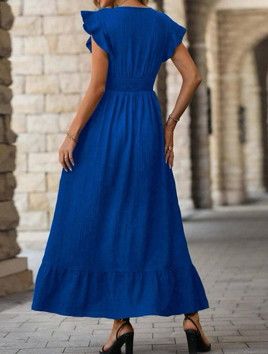 V Neck Ruffle Sleeve Trim Mini Summer Dress