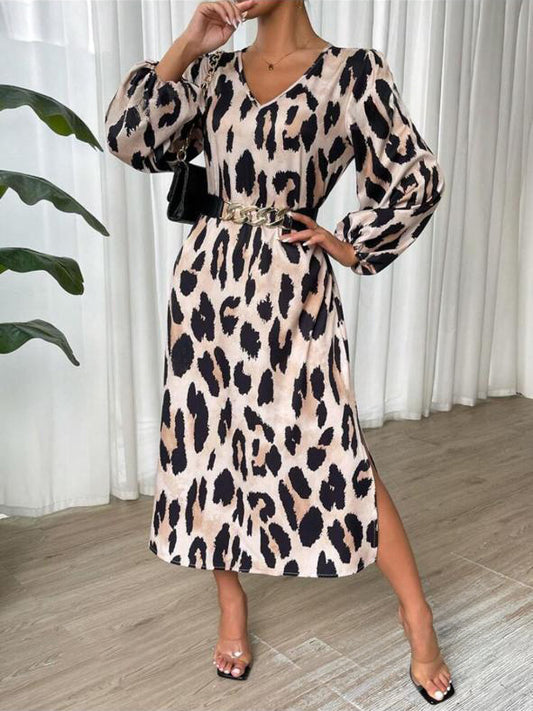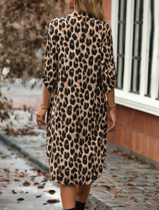 Leopard Print Short Sleeve T Shirt Dress Crewneck Pocket A Line Tee Dress