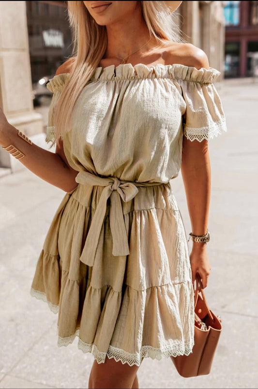 SOLID COLOR, OFF-SHOULDER LINEN DRESS