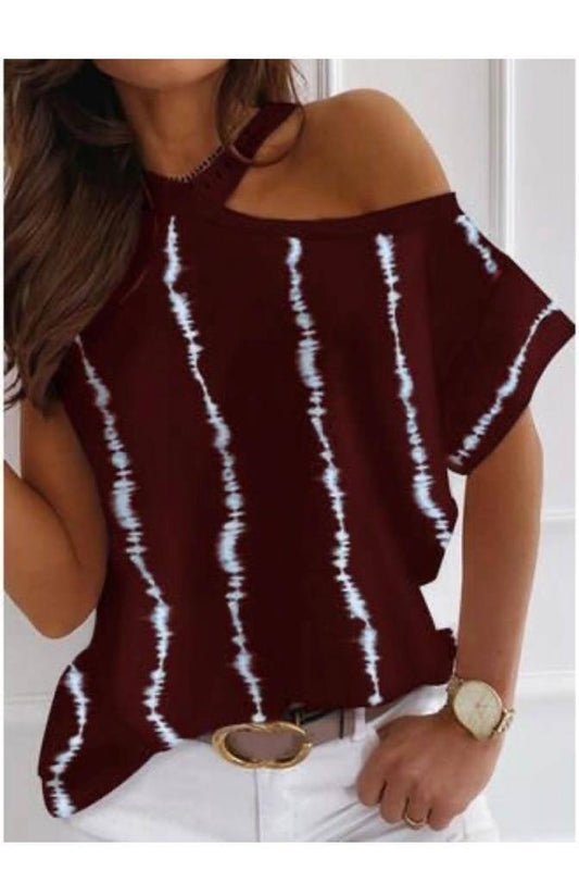 Off Shoulder Short Sleeve Shirt Frill Trim Blouse Tops