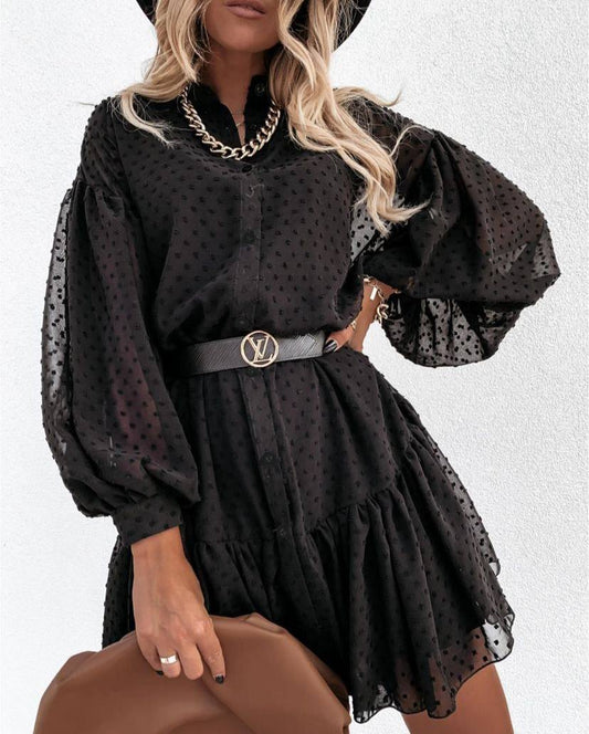 Polka Dot Long Sleeve Mini Tulle Liner Dress