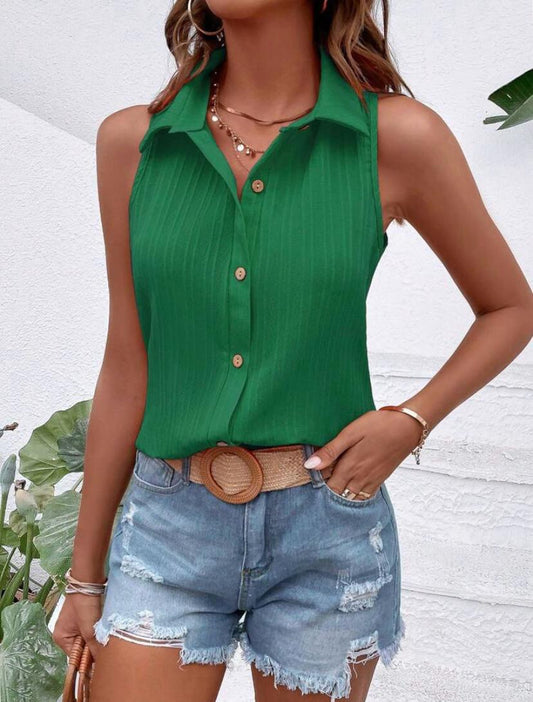 CRINKLE SLEEVELESS BUTTON FRONT SHIRTS TOPS