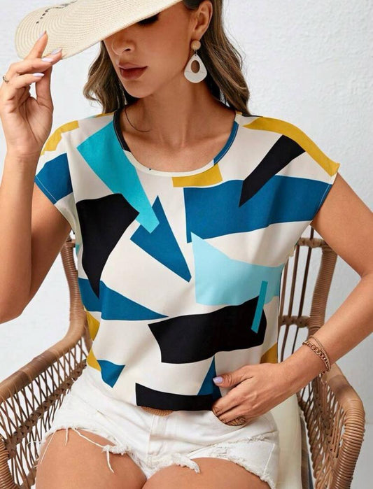 GEOMETRIC ABSTRAC SHORT SLEEVE TOPS BLOUSE