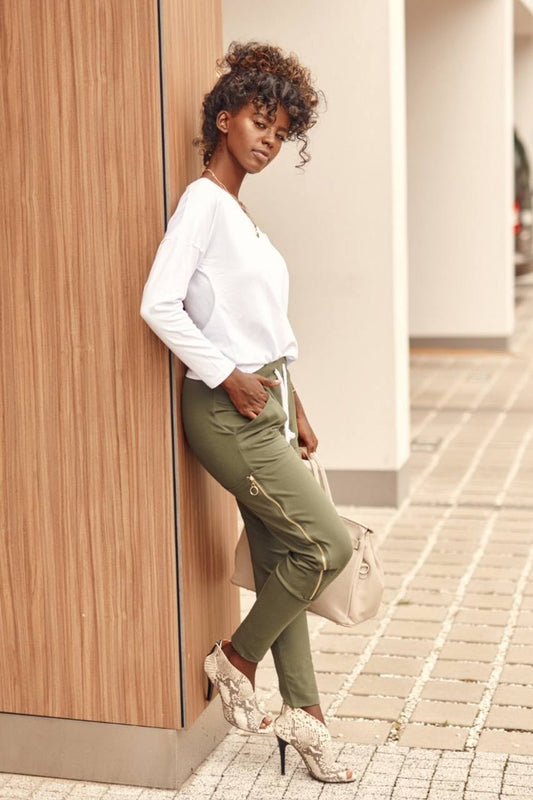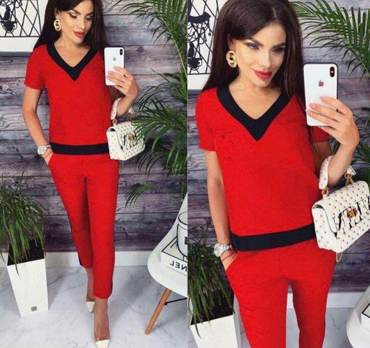 2 Pieces Set V Neck Top Blouse and Skinny Pants