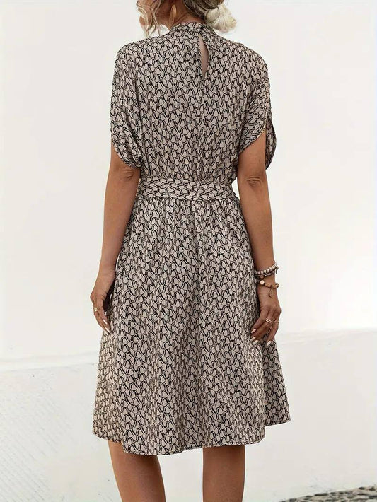 BATWING SLEEVE GEO BELTED SUMMER DRESS