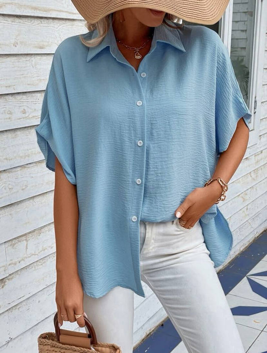 Batwing Short Sleeve Crew Neck Shirt with Pocket