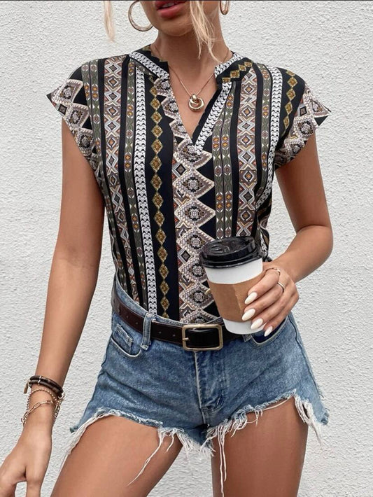 Batwing Sleeve V Neck Ethnic Top Blouse