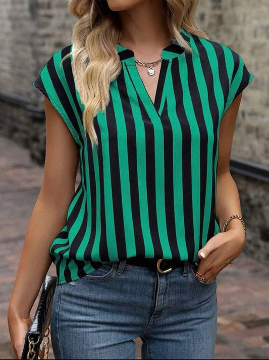 Blue Stripe Cut Out Square Neck Sleeveless Tank Tops Tunics Blouse