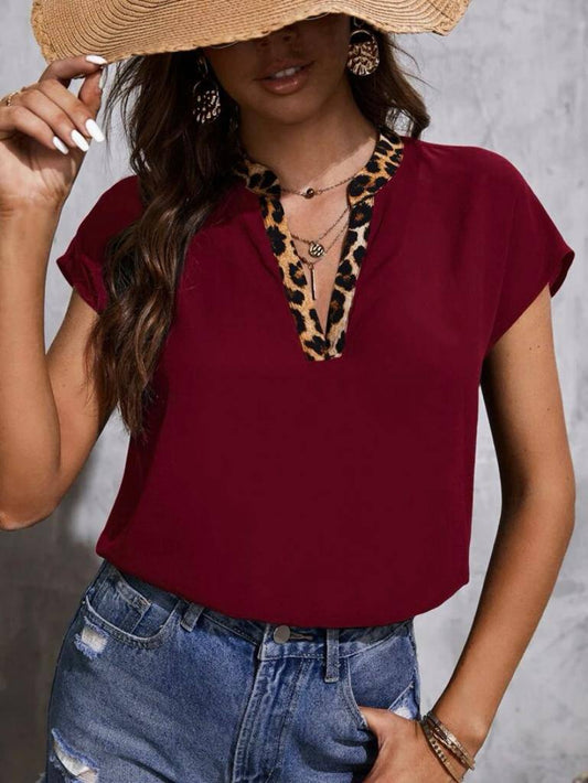 Basic Solid Short Sleeve Crew Neck Blouse Top